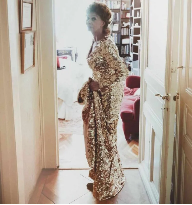 Sophia Loren ha già 89 anni, ma non ha intenzione di perdere il suo carisma e la sua femminilità. Le foto scattate dal figlio della star ne sono la prova diretta. Edoardo ha pubblicato una foto per mostrare ai fan come sua madre si prepara per la cena. Anche a casa, la star del cinema italiano è stupenda. E che dire del suo abbigliamento! Il lungo abito con strass è semplicemente lussuoso. E non si vergogna affatto di indossare abiti con la schiena scoperta alla sua età.