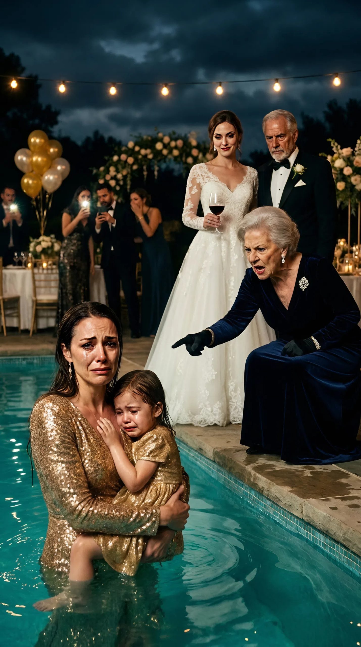 Qualcuno iniziò ad applaudire lentamente. Un applauso ironico, crudele, che presto si diffuse tra la folla. Ridevano. Gli ospiti eleganti del club circondavano la fontana con i loro calici in mano, ridendo di una madre fradicia e ferita e della sua bambina terrorizzata.