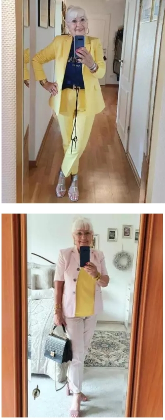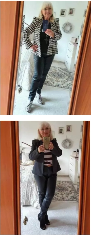 La maggior parte delle donne over 70 ha già acquistato pantaloni in pelle. Per le donne di questa età, l’abbinamento ideale è una giacca sopra una maglietta o una camicetta e pantaloni in pelle.