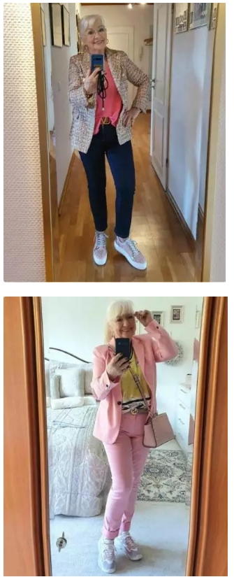 Per apparire eleganti e moderne è necessario indossare abiti che piacciono e non prestare attenzione ai pregiudizi relativi all’età. Le scarpe comode, come le scarpe da ginnastica o le sneakers, rimangono di moda anche in questa stagione. Possono essere indossate non solo con i jeans, ma anche con abiti, gonne di vari modelli e tailleur classici.