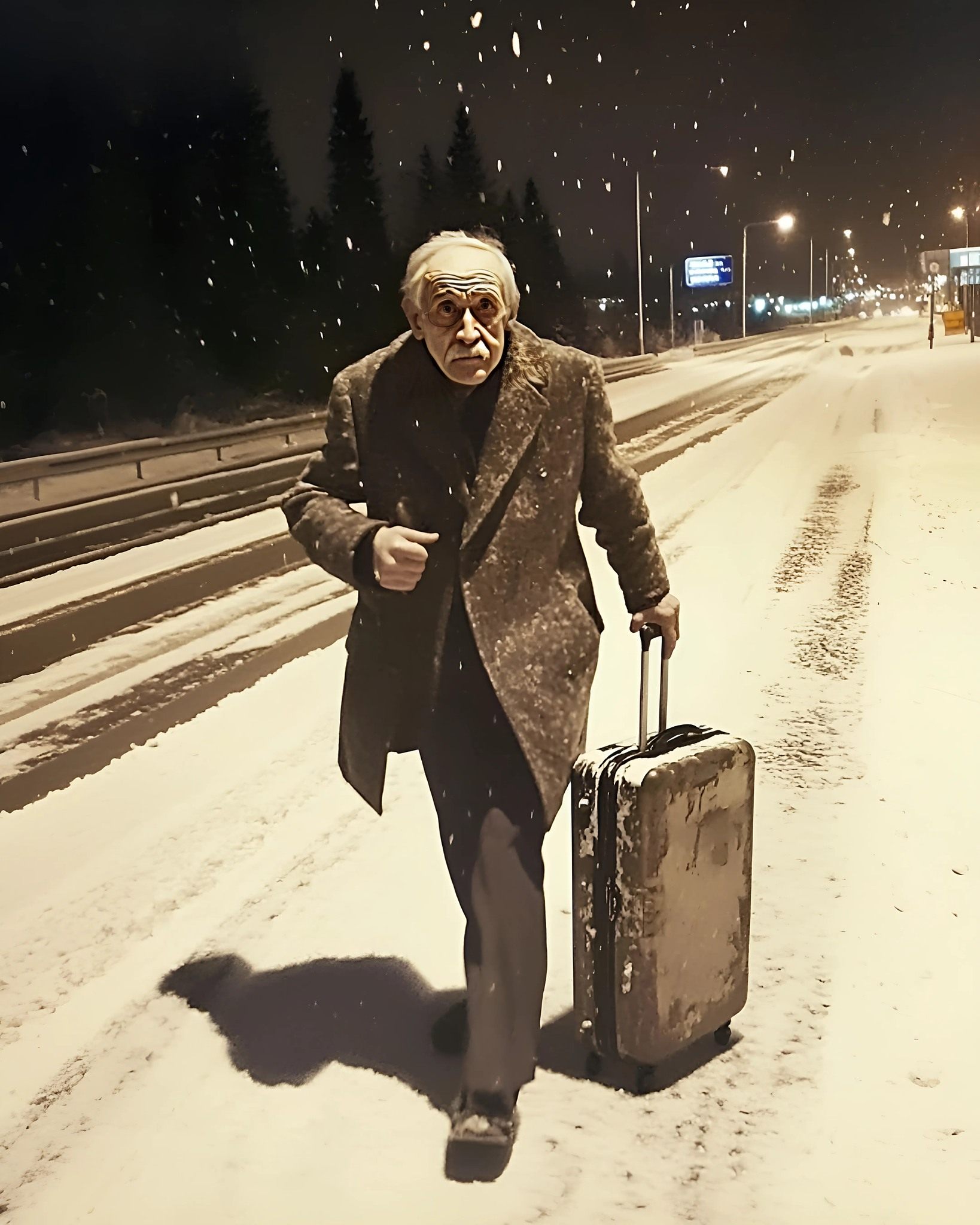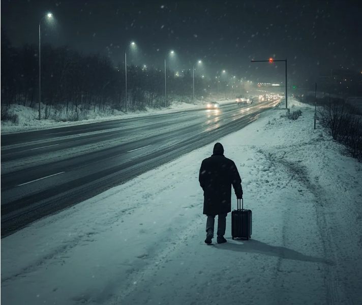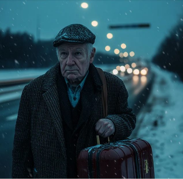 In una nevosa notte di Natale, ho visto un anziano che camminava barcollando lungo l’autostrada ghiacciata, stringendo tra le mani una valigia malconcia. Contro ogni buon senso, mi sono fermato, e quel singolo gesto di gentilezza ha portato a una verità decisiva e a un legame inaspettato che cambierà per sempre la mia famiglia.
