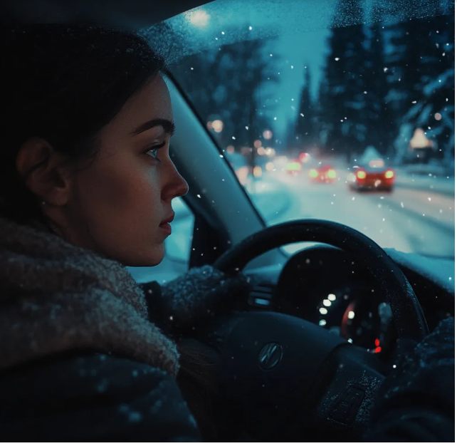 Era la vigilia di Natale e davanti a me si estendeva l’autostrada, fredda e silenziosa sotto il peso della neve. Su entrambi i lati si stagliavano gli alberi, con i rami appesantiti dalla brina.