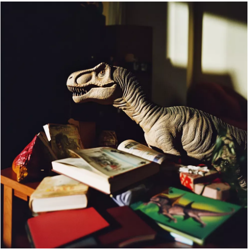 Mi guardò, poi guardò il dinosauro.