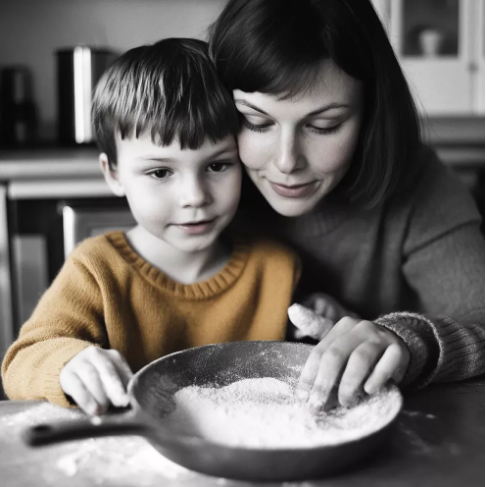 La farina ricopriva il pavimento e persino la punta del naso di Joey. Lui ha riso quando ha battuto le mani, sollevando una nuvola di farina in aria e osservandola volteggiare come una tempesta di neve.