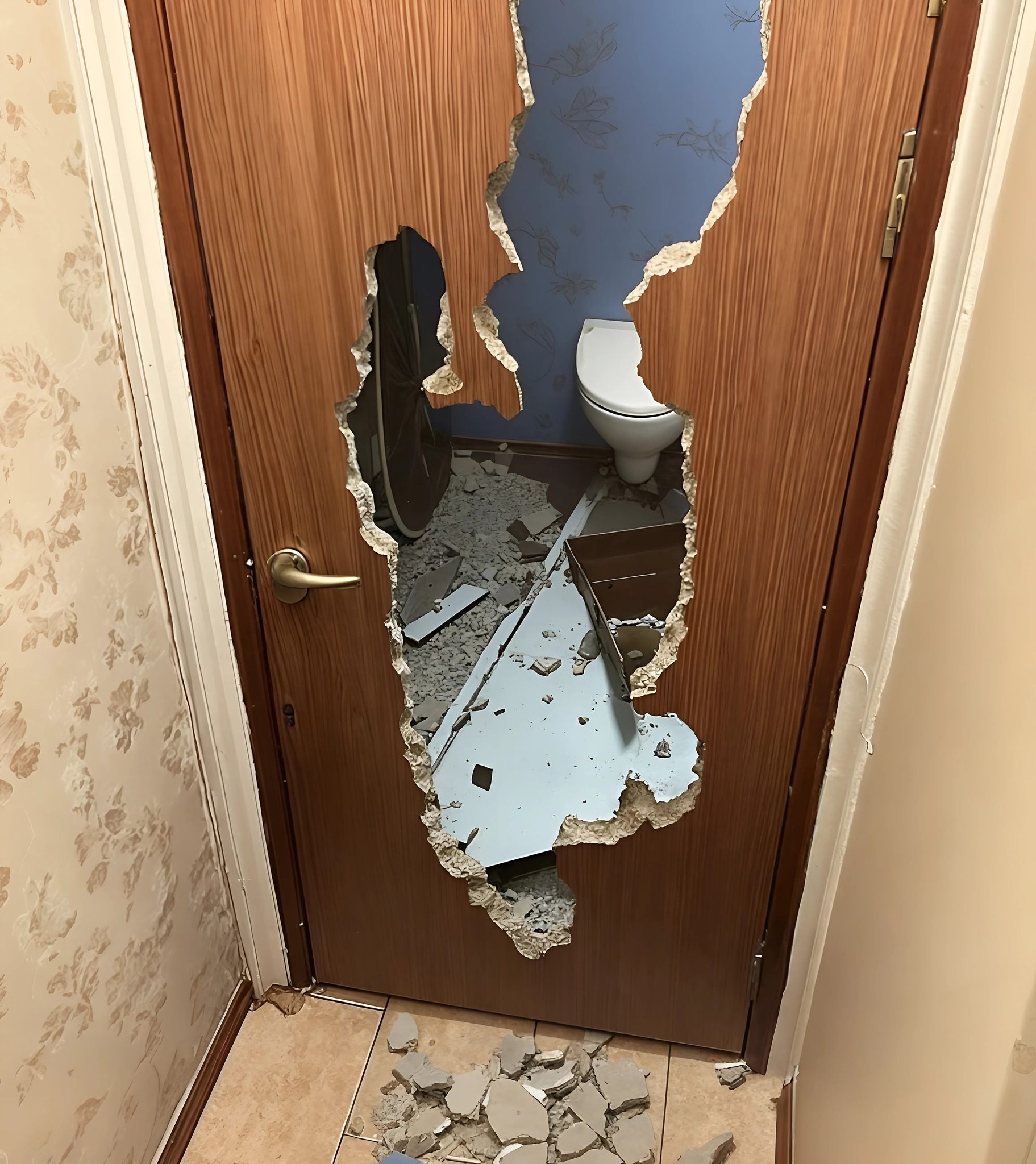 Sul pavimento c’erano schegge di legno, la maniglia della porta era appesa a un filo e la serratura era rotta. Ho chiesto spiegazioni, ma la verità rimaneva sfuggente. “Cosa è successo qui?” ho chiesto, cercando di mantenere la calma.