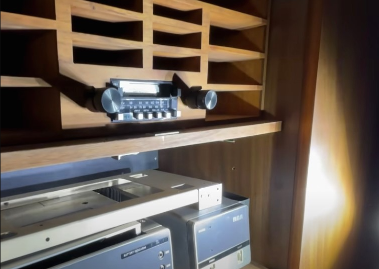 Il design esclusivo comprendeva pannelli in pregiato mogano, lussuosi divani in velluto scarlatto e moquette di altissima qualità, il tutto a testimonianza del gusto raffinato e dell’estetica di Presley.