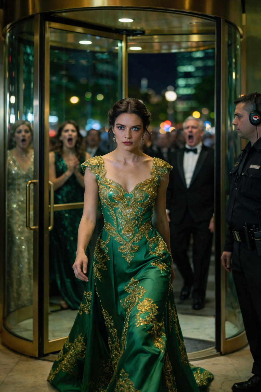 Indossavo un abito da sera color smeraldo, creato da una famosa casa di moda milanese. La sua linea era impeccabile: elegante, sobria, autorevole. I gioielli color zaffiro riflettevano la luce, e il loro splendore fece tacere la folla.