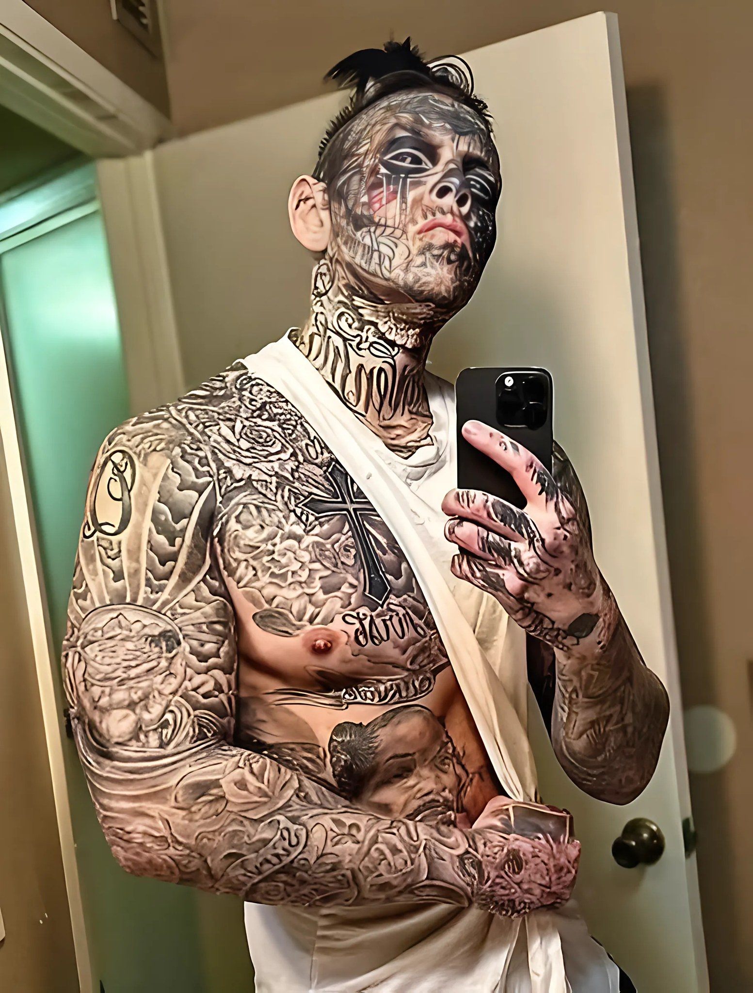 Dopo i primi tatuaggi, sul suo corpo è apparso un intero catalogo di disegni. Ha persino chiesto al tatuatore di infilare l’ago in tutte le parti dei suoi bulbi oculari per renderli neri.